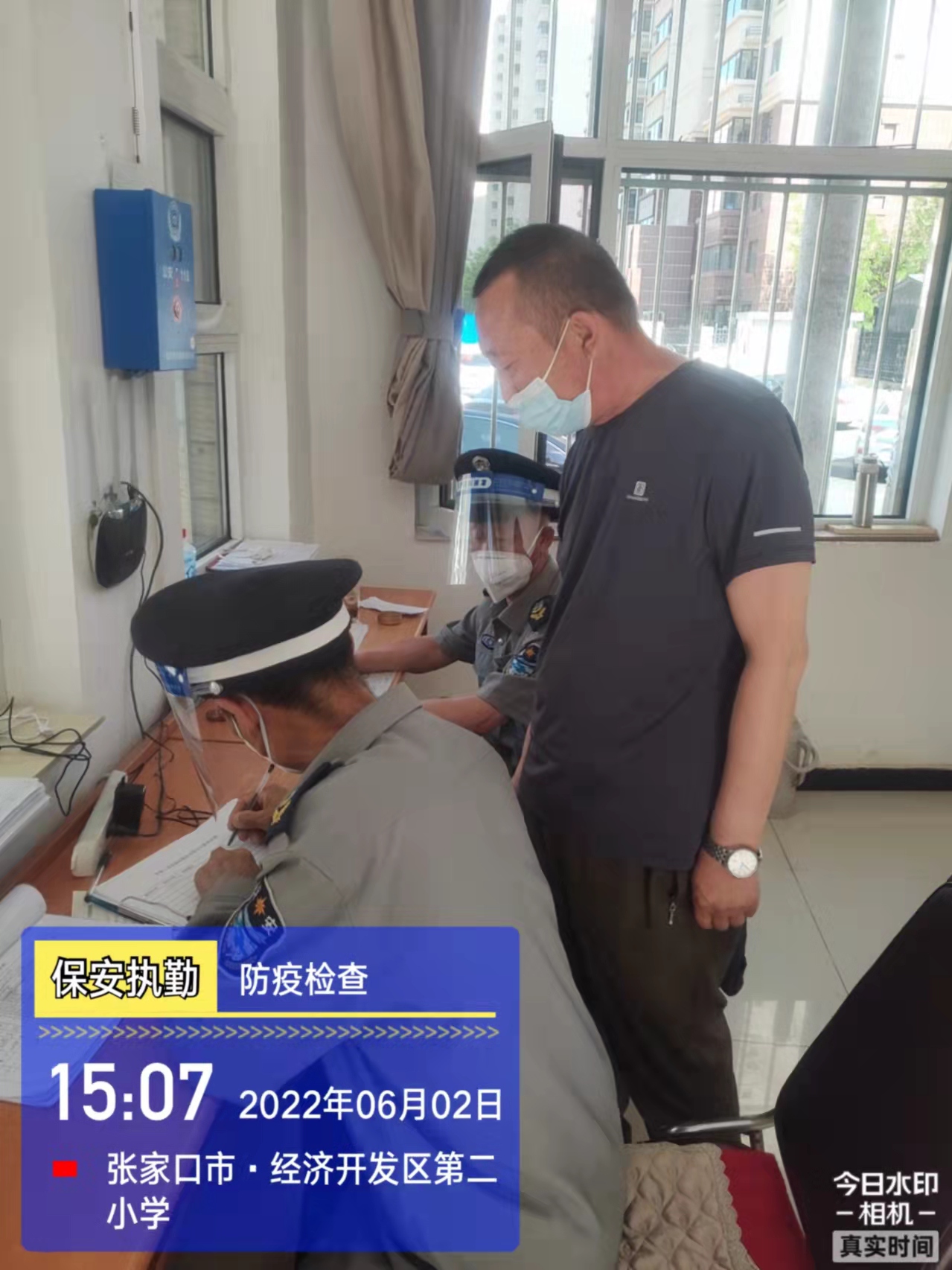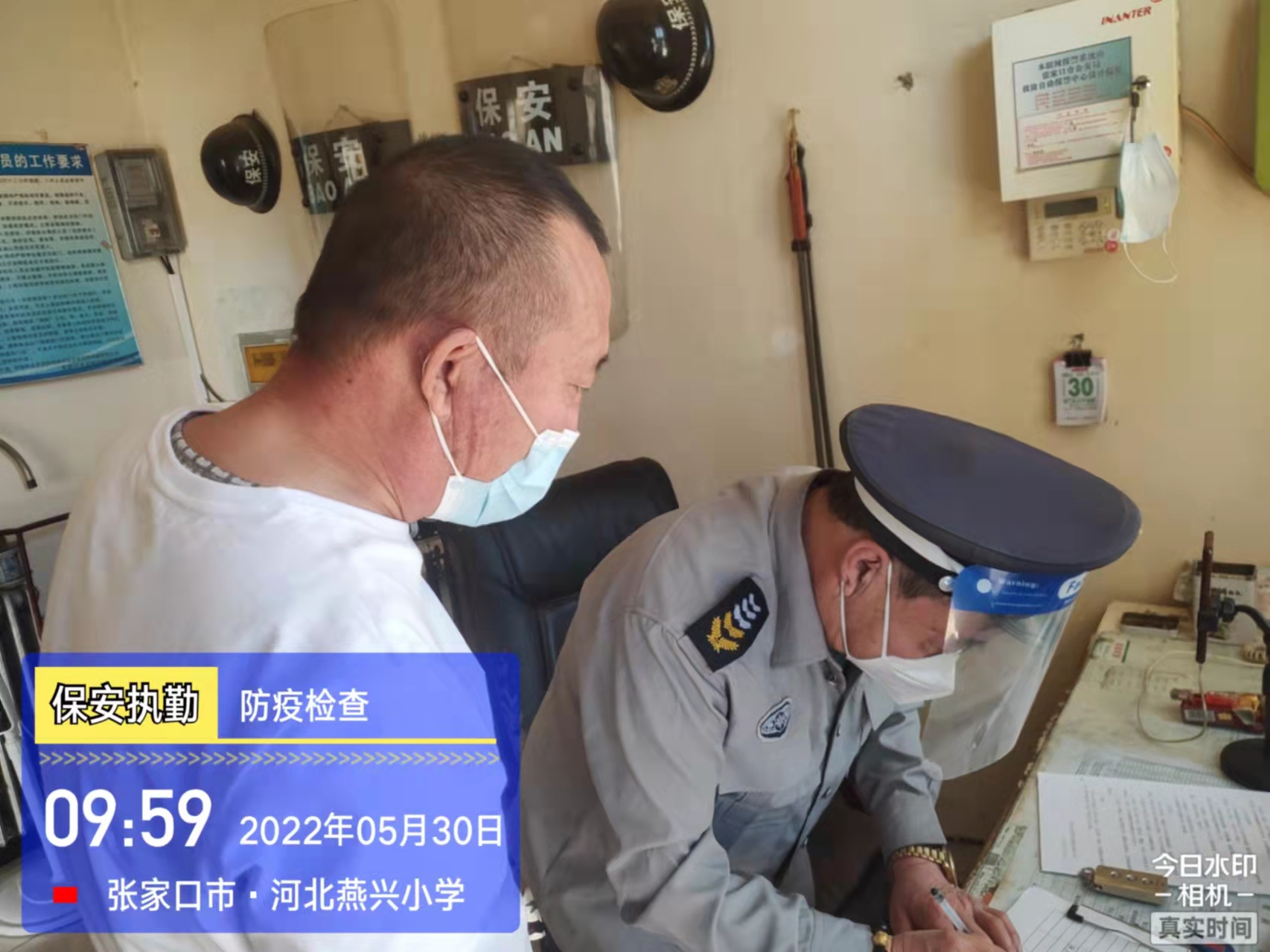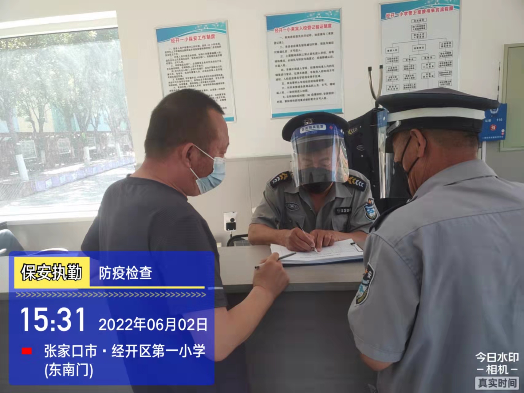 會后,我公司迅速召開“疫情期間學(xué)校門衛(wèi)安全防控工作要求”的會議,制定了校園安全防疫規(guī)定:疫情防控期間,校園保安隊員必須穿制服,規(guī)范佩戴“三件套”(防護(hù)隔離面罩、N95口罩、一次性PVC手套);進(jìn)出校園的師生必須測量體溫,外來人員需登記、測溫、掃碼(幸福張家口,呈綠碼)、且持7日內(nèi)核酸陰性檢測結(jié)果;保安室需保持干凈整潔,物品擺放有序,勤開窗通風(fēng),定期噴灑消毒藥水。為此,公司特成立校園防疫檢查小組,由副經(jīng)理帶隊,協(xié)同主管大隊長對經(jīng)開區(qū)所有中小學(xué)校安保崗位進(jìn)行防疫工作檢查,檢查期間,發(fā)現(xiàn)問題,現(xiàn)場處理,并及時與校方領(lǐng)導(dǎo)溝通,杜絕同樣問題再次出現(xiàn),確保校園防疫安保工作萬無一失,為各校師生鑄就一道安全防線!
