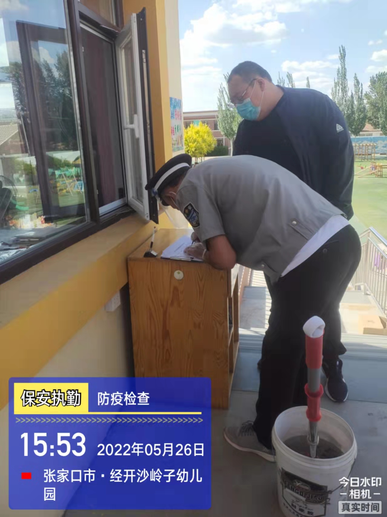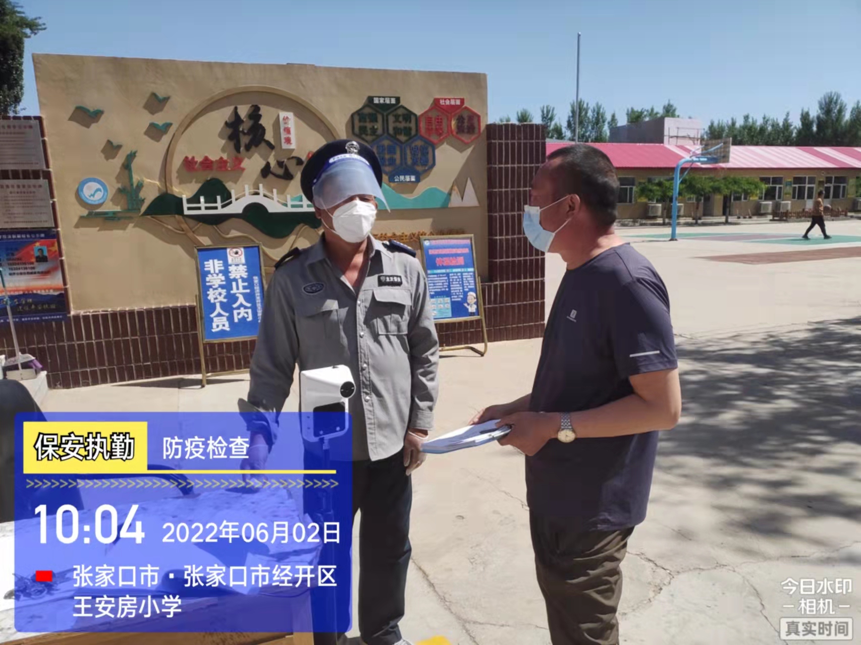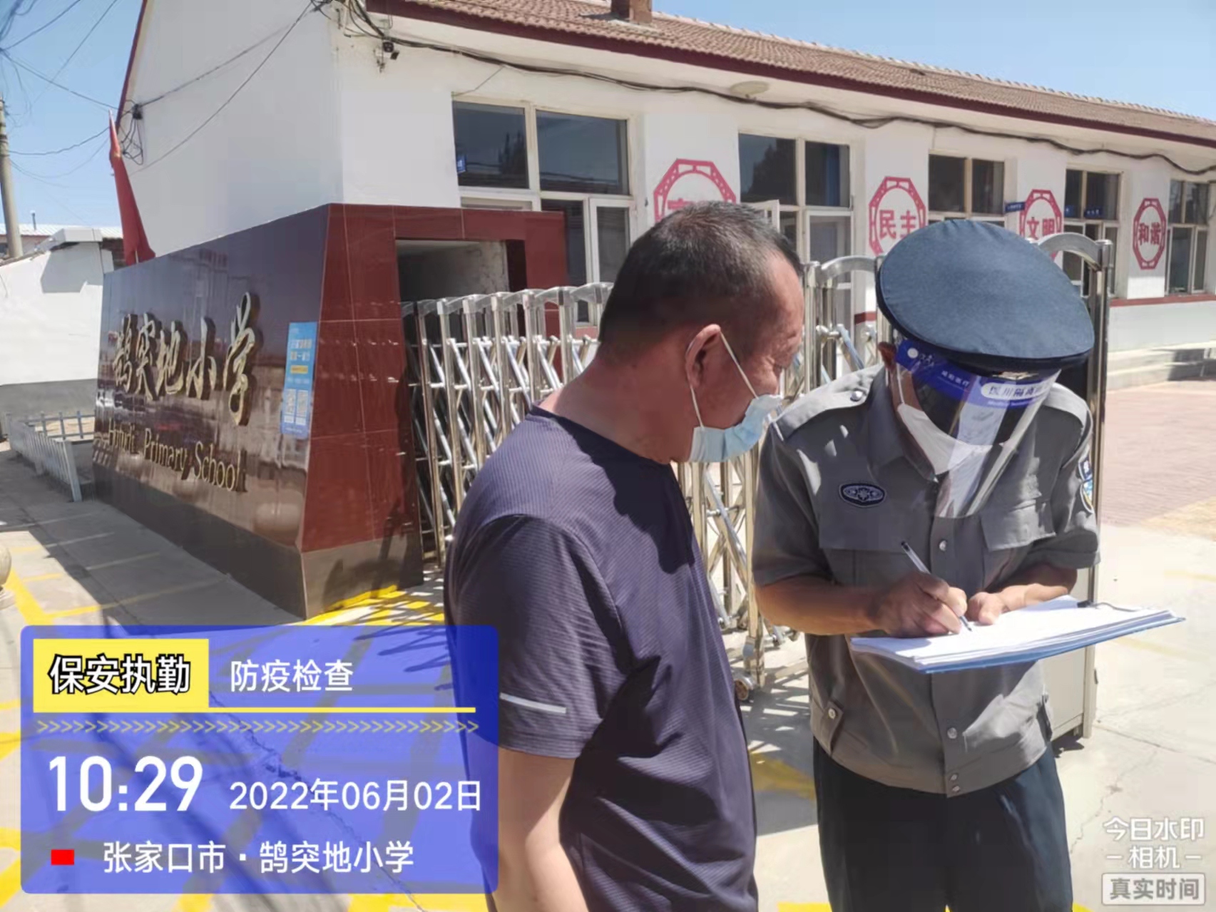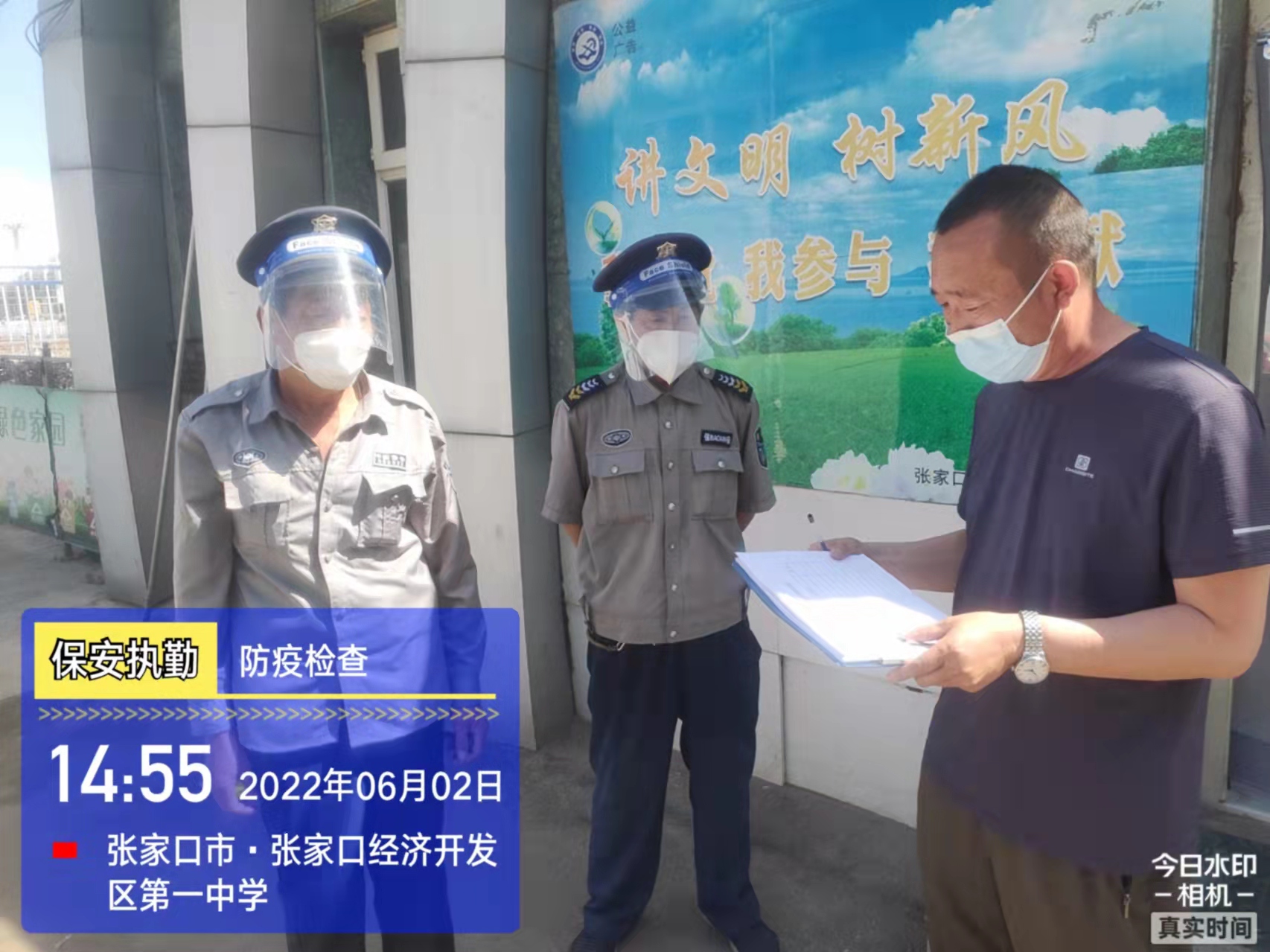 會后,我公司迅速召開“疫情期間學(xué)校門衛(wèi)安全防控工作要求”的會議,制定了校園安全防疫規(guī)定:疫情防控期間,校園保安隊員必須穿制服,規(guī)范佩戴“三件套”(防護(hù)隔離面罩、N95口罩、一次性PVC手套);進(jìn)出校園的師生必須測量體溫,外來人員需登記、測溫、掃碼(幸福張家口,呈綠碼)、且持7日內(nèi)核酸陰性檢測結(jié)果;保安室需保持干凈整潔,物品擺放有序,勤開窗通風(fēng),定期噴灑消毒藥水。為此,公司特成立校園防疫檢查小組,由副經(jīng)理帶隊,協(xié)同主管大隊長對經(jīng)開區(qū)所有中小學(xué)校安保崗位進(jìn)行防疫工作檢查,檢查期間,發(fā)現(xiàn)問題,現(xiàn)場處理,并及時與校方領(lǐng)導(dǎo)溝通,杜絕同樣問題再次出現(xiàn),確保校園防疫安保工作萬無一失,為各校師生鑄就一道安全防線!